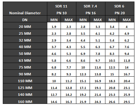 | Range | We offer a wide range of PPR Pipes as per the table below |